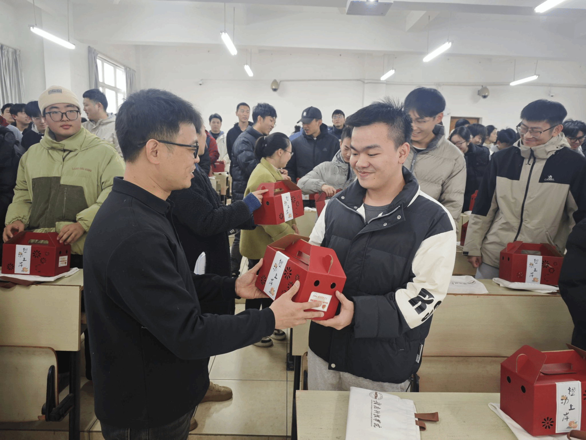 为了表达对考研同学们的关心和支持,公司全体老师特意准备了寓意着“心想事成,大吉大利”的脐橙和满载祝福的考研大礼包。一份份礼物传递着公司对同学们的深情厚谊和美好祝愿,让在场的每一位同学都感受到了来自公司的温暖和力量。