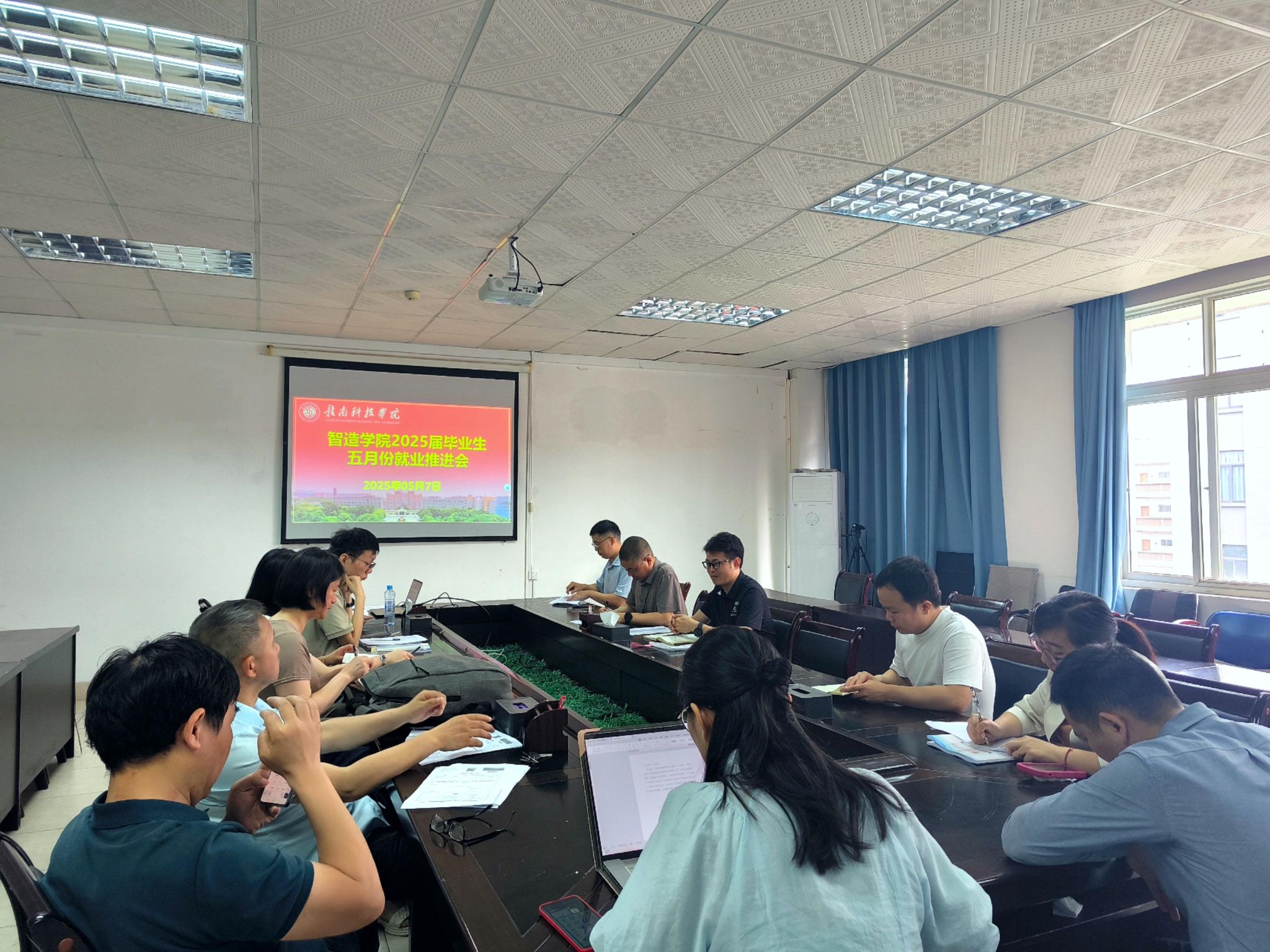 在交流环节,与会人员积极分享就业工作经验和创新做法。各班主任详细汇报了班级就业进展,重点分析了未就业员工具体情况,并提出针对性帮扶计划。会议还就校企合作达成新共识,计划邀请上饶宇瞳公司、奇精机械股份有限公司、广东金悦诚蓄电池有限公司、比尔安达等企业开展线上或线下专场招聘会,为毕业生拓展就业渠道。