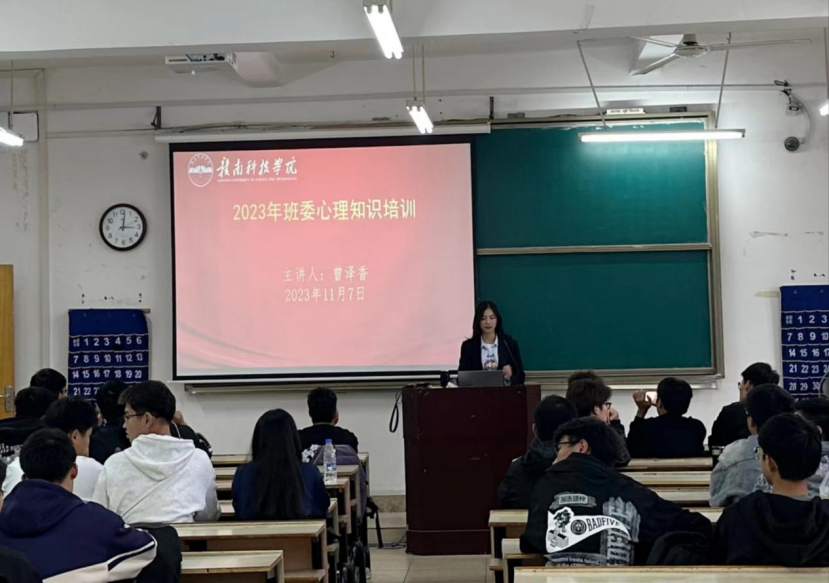 本网讯:秋高气爽,秋风习习。11月7日下午,机电工程系邀请公司心理咨询中心专任老师曾泽香给23级心理委员、班长及团支书等重要班委开展心理知识培训。