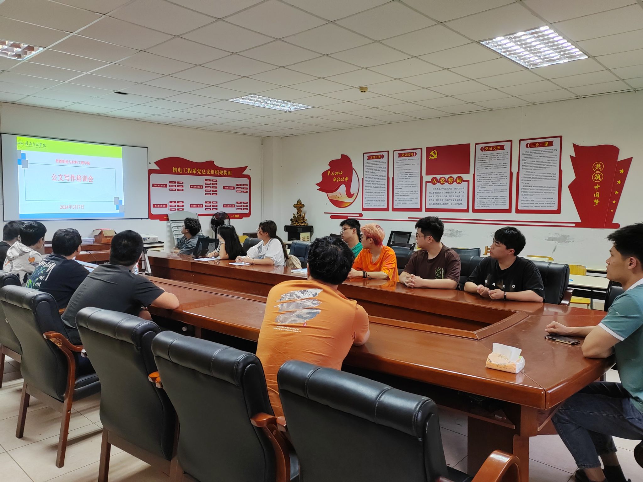 本网讯:为提高公司团学骨干公文写作能力,加深对文章格式和细节的深刻理解,2024年5月7日,伟德BV官网在工程研究院s417a召开团总支、员工会干部公文写作培训会,会议由团总支员工第二副书记饶宇鸿主持,团委书记卢名亮老师参与,团总支、员工会的全体团学骨干干参加此次会议。