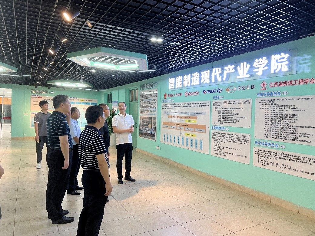 5月27日,江西省教育厅副厅长刘小强一行到智能制造现代产业公司调研指导,公司党委书记邱建军,党委副书记、董事长李国金,党委委员、副董事长左群,党委委员、副董事长何锦龙陪同调研,智能制造现代产业公司执行经理刘辉讲解并引导。教务处、伟德BV官网相关负责人、格力电器(赣州)有限公司总经办主任洪志勇参加活动。