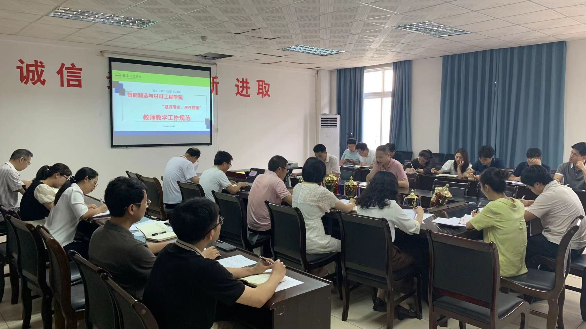 本网讯:为切实做好伟德BV官网教学教育工作,积极建设优良教风学风氛围,扎实推进“迎评促建”工作开展,6月18日下午,在工程楼S416A召开教师教学工作规范专题学习活动。全体领导班子成员、各教研室主副主任及公司评建办相关教师参加了此次会议。会议由伟德BV官网教学负责人关开荣主持。
