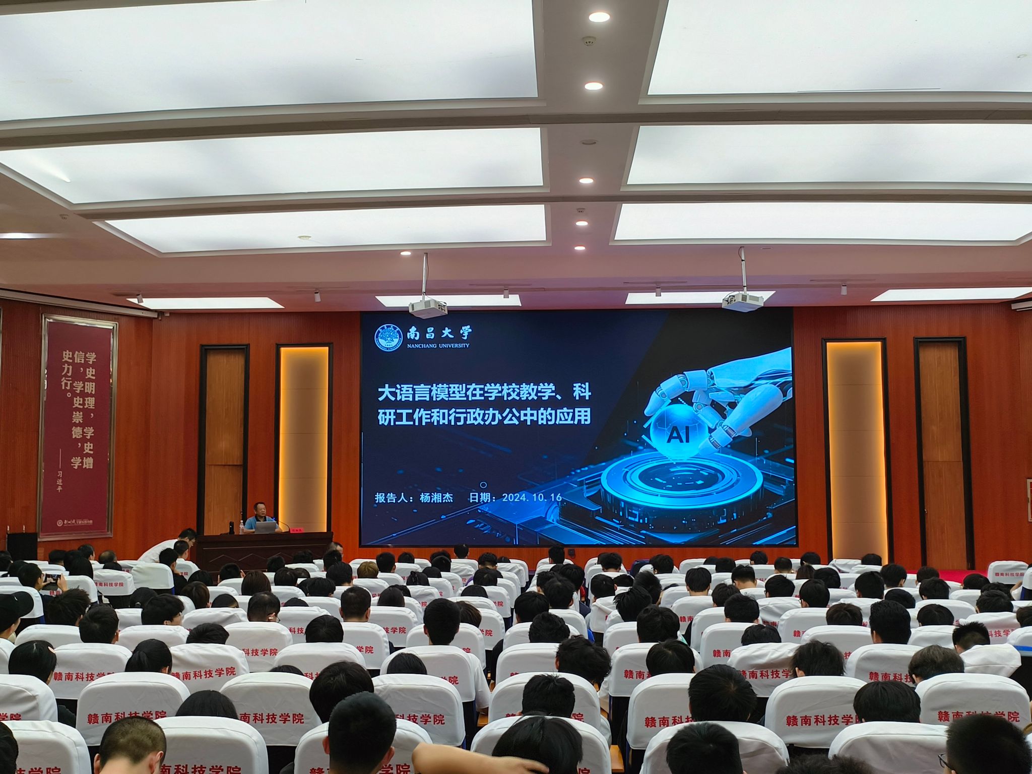 本网讯:10月16日下午,伟德BV官网举行“匠心智造”大讲堂学术讲座。本次讲座邀请到南昌大学先进制造公司杨湘杰教授作“大语言模型在公司教学、科研工作和行政办公中的应用”报告,吸引了来自全校300多名师生的积极参与,报告会由伟德BV官网副经理刘辉主持。