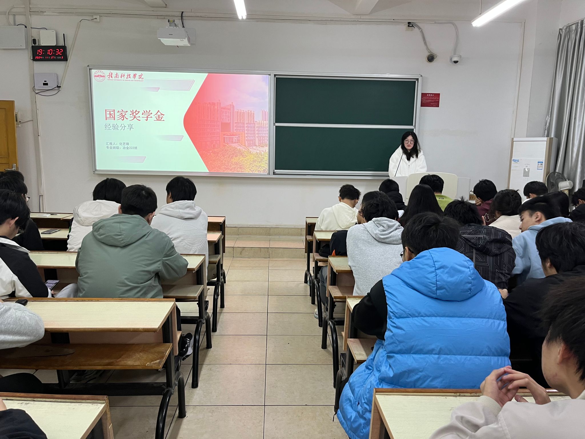 随后,冶金221班化艺锦同学为冶金231班、冶金232班和冶金241班全体员工进行榜样宣讲。化艺锦表示坚持勤奋、脚踏实地是学习上不断保持进步的主要原因,同时她也给同学们分享了作为班级干部团支部书记的工作方法,宣讲过程从容稳重,娓娓道来,最后由台下提问台上答疑的方式结束本次宣讲。