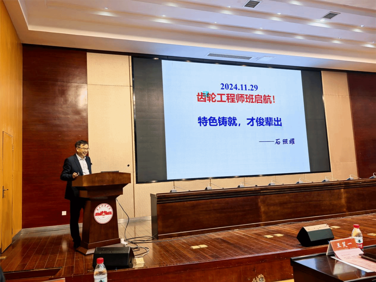 会议期间举行了“照耀齿轮班”开班仪式、企业家座谈和学术讲座。参会人员见证了由李国金、石照耀与江西省机械工程学会秘书长杨文共同为“照耀齿轮班”揭牌,李国金在崇善楼第一会议室与齿轮行业企业家代表话谈“两层半”高素质“产业精细工程师”人才培养。