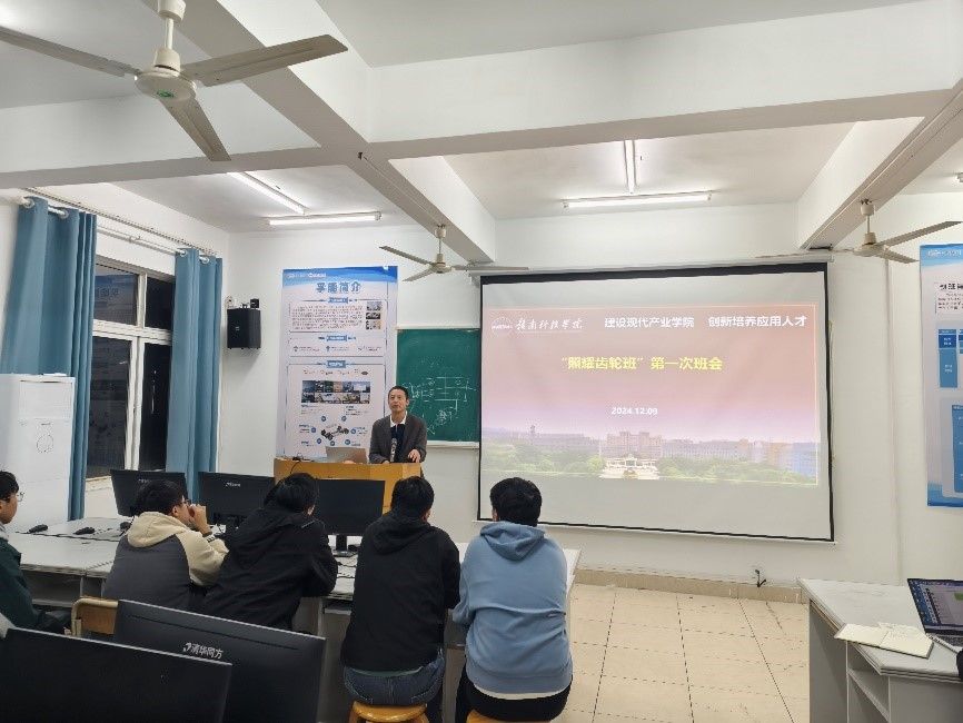 本网讯:12月9日,智能制造现代产业公司2026届“照耀齿轮班”“优必选机器人班”和“格力明珠班”分别召开首次班会。智能制造现代产业公司执行经理刘辉、副经理关开荣、教学管理部主任王腊节、产业服务部主任葛德亮,各班级教研室正副主任、班主任以及全体同学参加了会议。班会由葛德亮主持。