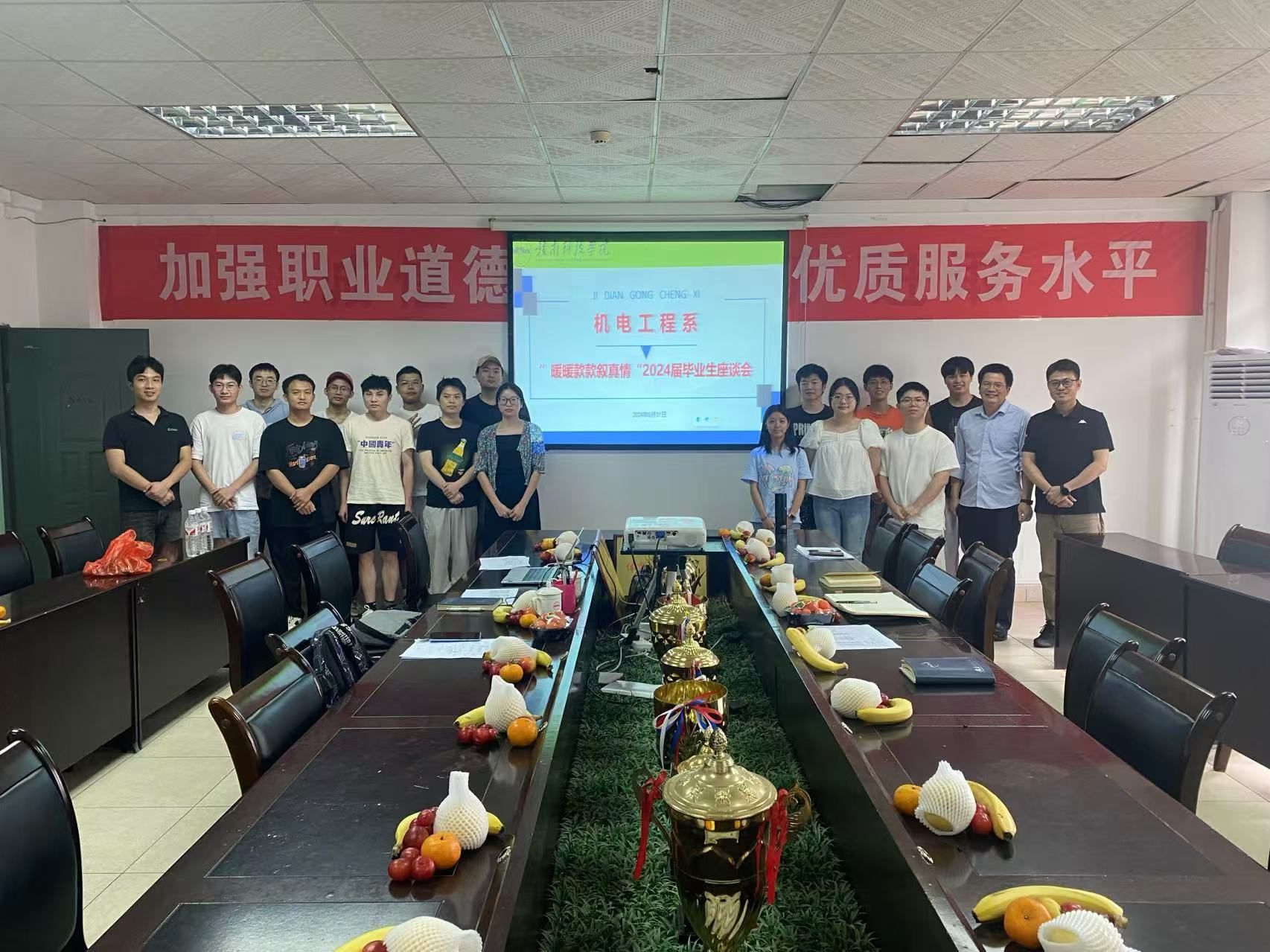 最后,座谈会在一片欢声笑语中圆满结束,师生们合影留念,记录下这一难忘的时刻。这次座谈会不仅是对毕业生们老员工活的一个完美总结,也是他们人生新旅程的起点,激励着他们在未来的道路上继续前行。
