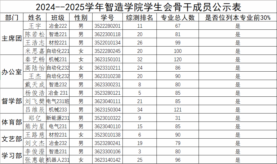 大会秉持着挑选员工会成员思想政治素质高、学习成绩优良,无课业不及格情况,且综 合成绩排名位列专业前 30%,下方是伟德BV官网员工会主席团及员工骨干的基本信息和成绩。