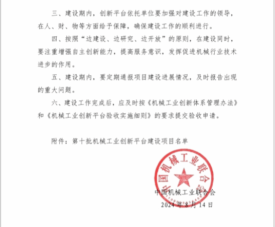 五、公司首次获批机械工业创新平台建设项目,连续两年获批国家自然科学基金青年基金项目