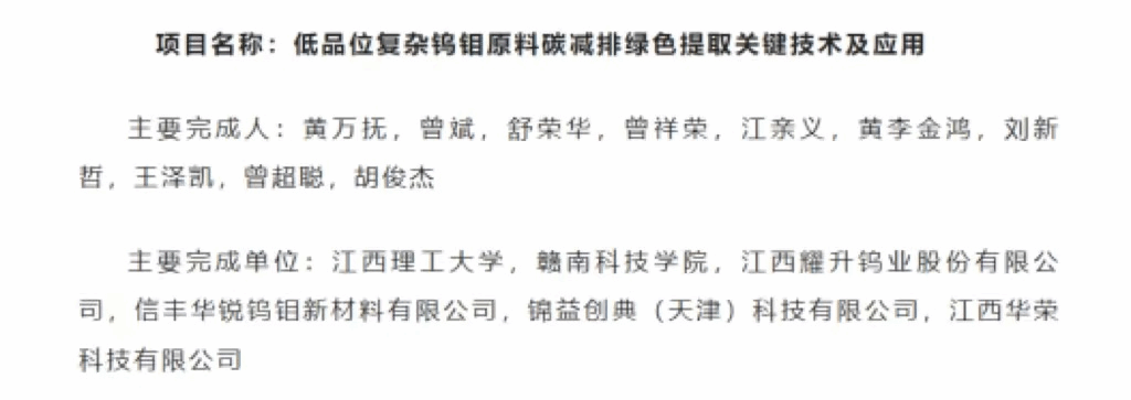 9月6日,江西省人民政府发布了《江西省人民政府关于2023年度江西省科学技术奖励的决定》。公司作为第二完成单位的项目《低品位复杂钨钼原料碳减排绿色提取关键技术及应用》喜获2023年度江西省科学技术进步二等奖。