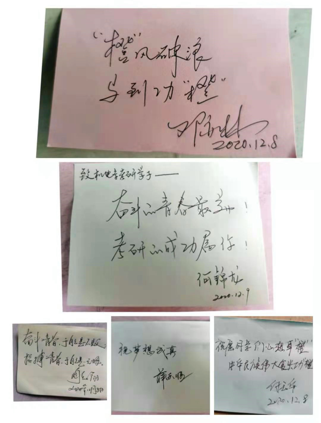 老师、学弟学妹们关切的祝福、满怀心意的礼物,使考研学子倍感温暖。相信每一位考研学子都能全力以赴,取得优异成绩,披荆斩棘,大展鸿鹄,走向成功!