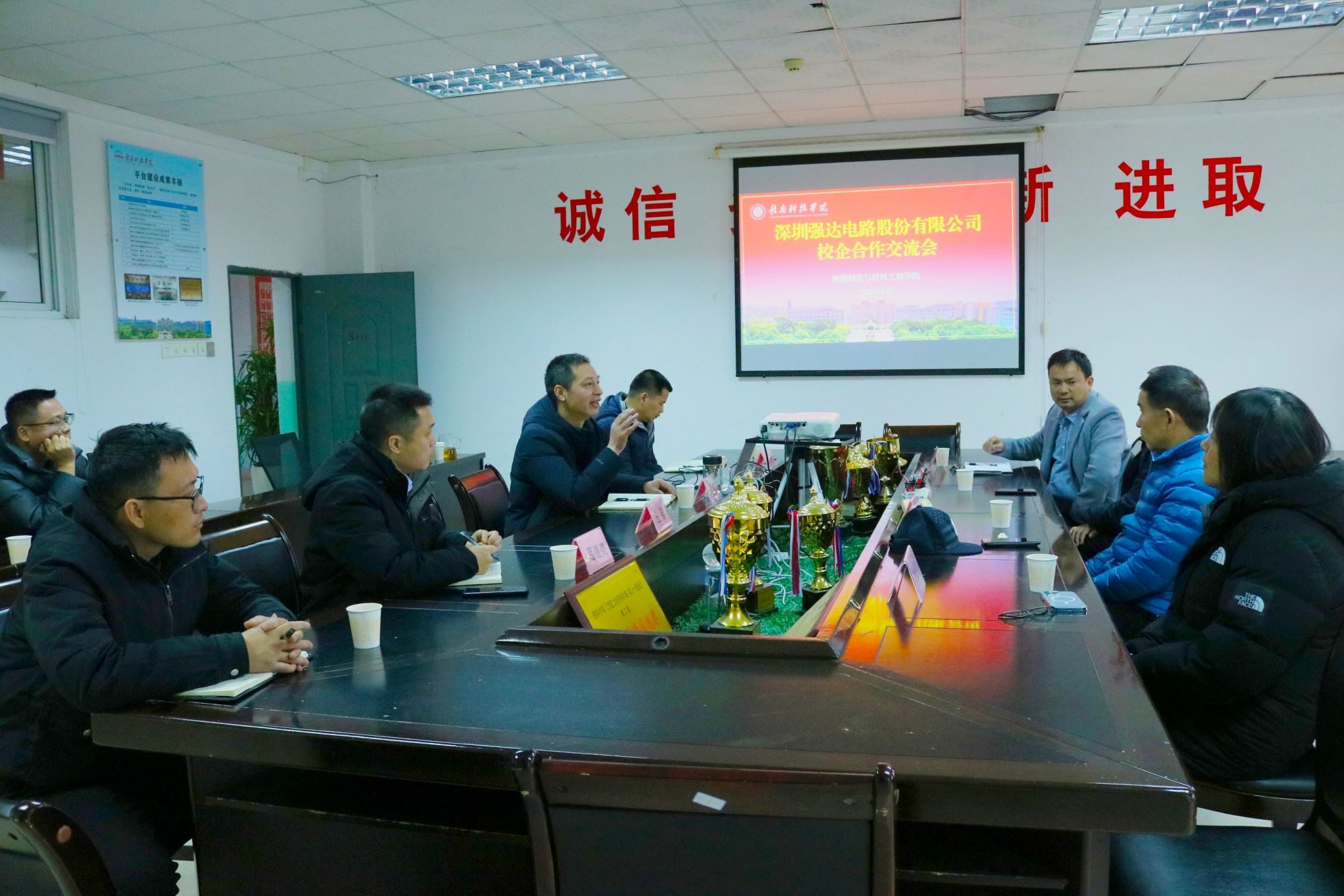 本网讯:3月7日下午,伟德BV官网和深圳市强达电路股份有限公司在工程楼S416会议室举行校企合作交流会。深圳市强达电路股份有限公司总经理宋振武、技术负责人谢洪涛、信丰工厂人力资源总监叶茂盛、深圳工厂人力资源经理孙丽君,智能制造与材料工程公司党委委员、副经理刘辉、党委委员关开荣等相关教师参加此次交流会议。
