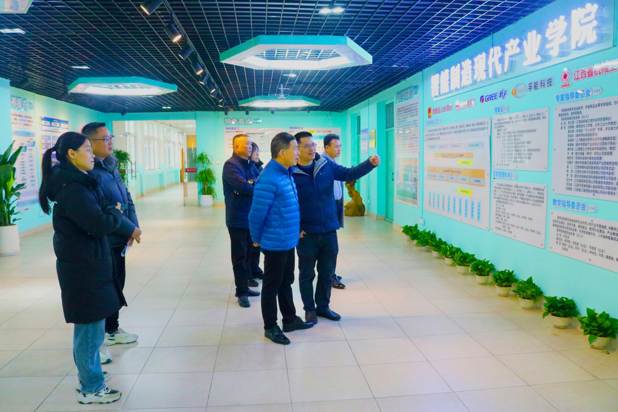 会后双方共同参观了智能制造现代产业公司,双方就校企合作的具体模式、人才培养方案、科研合作方向等问题进行了深入探讨。技术负责人谢洪涛详细介绍了公司在技术研发方面的需求和成果,表示希望与公司在新技术研发、产品创新等方面开展深度合作。关开荣就校企合作中的人才培养、实习实训等方面提出了具体建议。