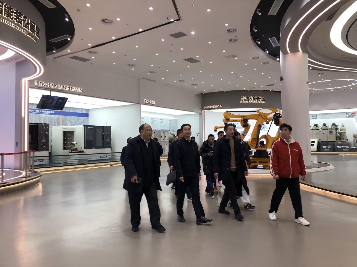 在格力电器赣州有限公司总经理方掩的陪同下,左群一行参观了校企共建协同育人实习基地。在参观过程中,方掩详细介绍了实习基地的设施设备、实习项目以及为员工提供的实践机会等情况。左群对格力公司为员工创造的优质实习条件表示高度赞赏,同时强调实习实践对员工成长的重要性,希望双方能在实习基地建设上继续加强合作,为员工提供更多接触前沿技术和实际生产的机会。