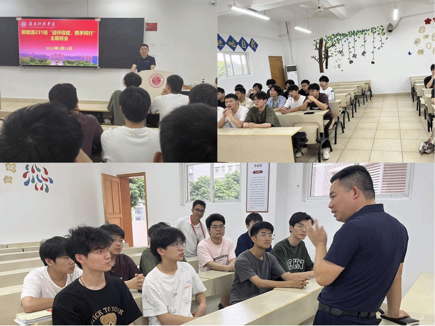 辅导员和班主任就学习学业、劳动教育、生命教育、宿舍管理等内容与同学们深入交流。班会结束后,杨智勇还召集班级员工干部进一步交流,希望班干部发挥模范带头作用,主动学习评估知识,带领同学遵守纪律,优化学风,凝聚班级力量,以高度责任感组织参与评估活动,为公司迎评贡献集体智慧。