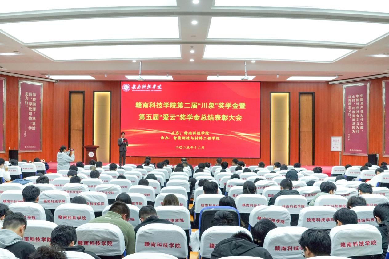 本网讯:为深化校企协同育人机制,激励青年学子深耕专业领域、勇攀技术高峰,勤奋学习、积极进取,12月9日,公司在图书馆学术报告厅举办2025年第二届“川泉”奖学金和第五届“爱云”奖学金总结表彰大会。昆山川泉智能装备有限公司董事长曾庆鸿,公司党委委员、副董事长左群出席活动,智能制造与材料工程公司党委委员、副经理刘辉,党委委员关开荣、肖志华,全体辅导员,班主任代表和员工代表参加此次表彰大会。