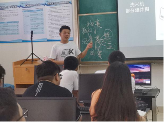 会议第一项由机械182冯志伟学长对大赛流程进行介绍展示了他们团队去年获得全国一等奖的作品——“防疫天使“。为参加十四届全国3D大赛的参赛队伍提供了宝贵的意见和建议。由机械181雷卉学姐亲身讲述自身参赛经验及团队成员之间相互合作,展示介绍了她们团队去年获得了全国特等奖的作品—“船式莲藕收挖机”。