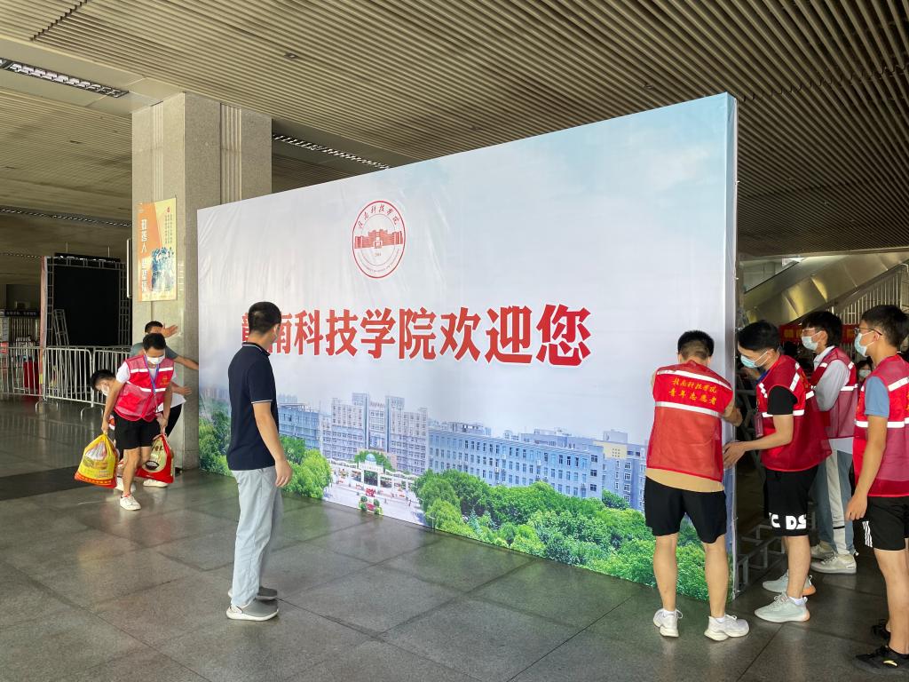 本网讯:自9月14日起到9月16日,伟德BV官网迎来首批学子——21级新生到校报到。为更好地迎接新生的到来,公司在机场、火车站、高铁站、校门口等多处地点设置了新生接待处,为了配合疫情防控的要求,接待新生的工作人员全程戴口罩,在机场和火车站等出口检查新生及家属的健康码和核酸检测阴性证明,在校门口查询赣通码和测量体温,流程结束才能进校。主任刘辉老师、党总支书记朱根松老师、团总支书记张敏老师、21级新生辅导员孔靖宇老师等多位领导到场迎接新生,并监督指导迎新工作。