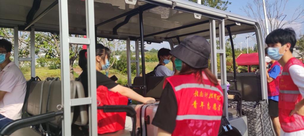 为方便新生到校报到,公司派出校车接送新生,校内设有摆渡车运送行李,还有志愿者帮新生扛重物,解决了家长担心孩子提不动行李的后顾之忧。