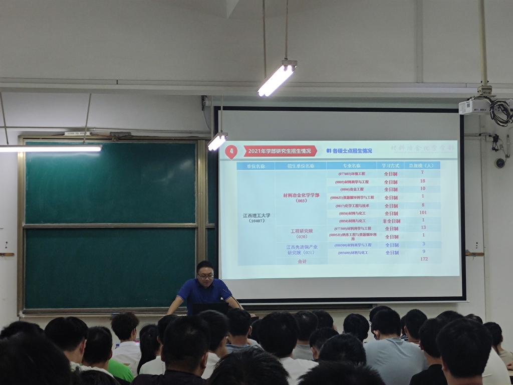 本网讯:9月23日晚七点,材料冶金化学学部副部长梁勇在主教Z1D2开展2022年学部研究生招生宣传会。公司材料与冶金专业18级考生及有志愿考研的19级同学到场参与本次会议。