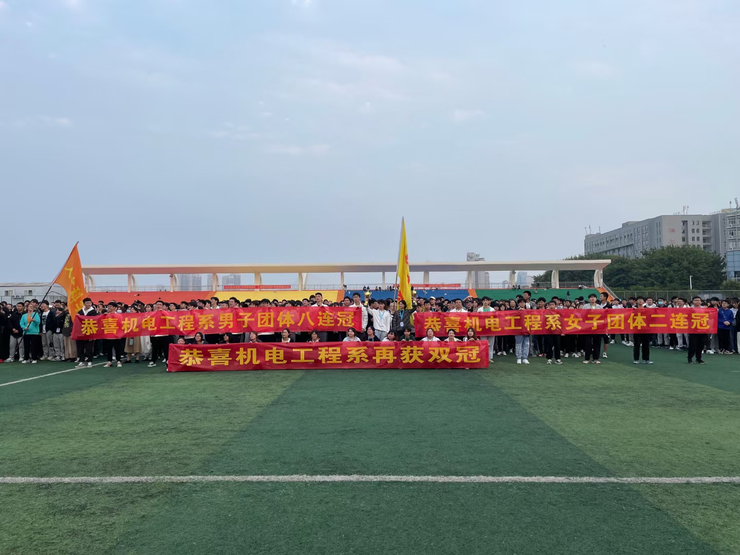 本网讯:2021年10月29至30日,伟德BV官网(江西理工大学应用科学公司)第十九届运动会隆重举行。在本次运动会,机电工程系再创佳绩,男子团体蝉联八连冠,女子团体成功卫冕,荣获二连冠,男女团体再获双冠!