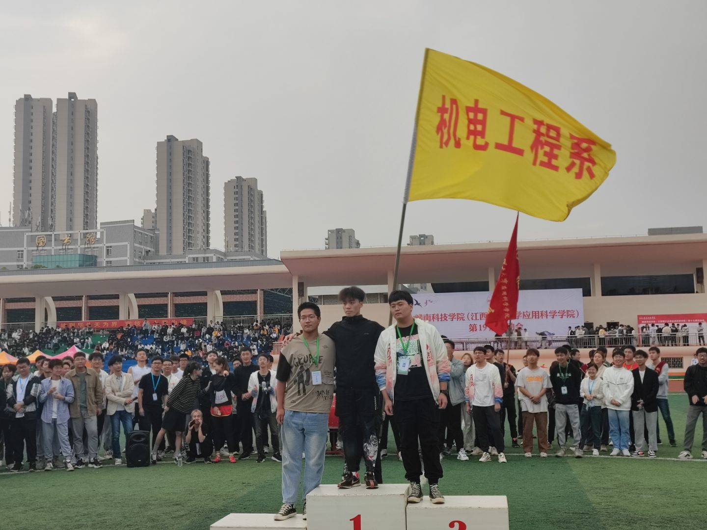 机电系师生团结奋进,为运动员提供良好的后勤保障。运动健儿驰骋赛场,为集体而拼搏,为荣誉而奋斗。雄姿英发,彰显机电雄风、赣科精神。满载荣誉而归,我们依然前行,发扬运动精神,共创机电新篇章!