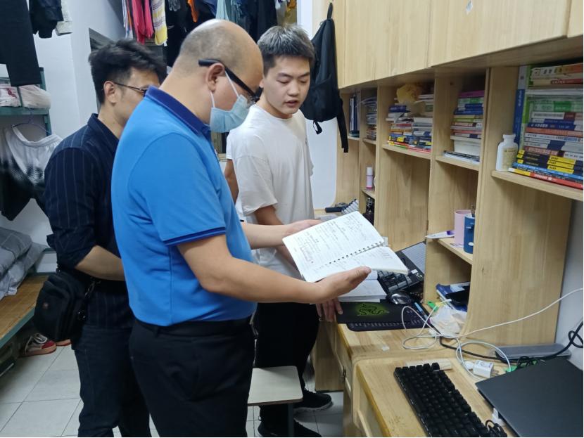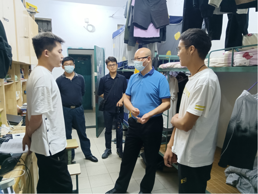 本网讯:5月12日晚,公司过渡期管委会副主任邓亦林带领学工办主任黄敬宝,机电工程系副主任肖志华和辅导员张敏,深入机电工程系员工宿舍看望员工,进一步了解疫情防控期间员工学习、生活情况。