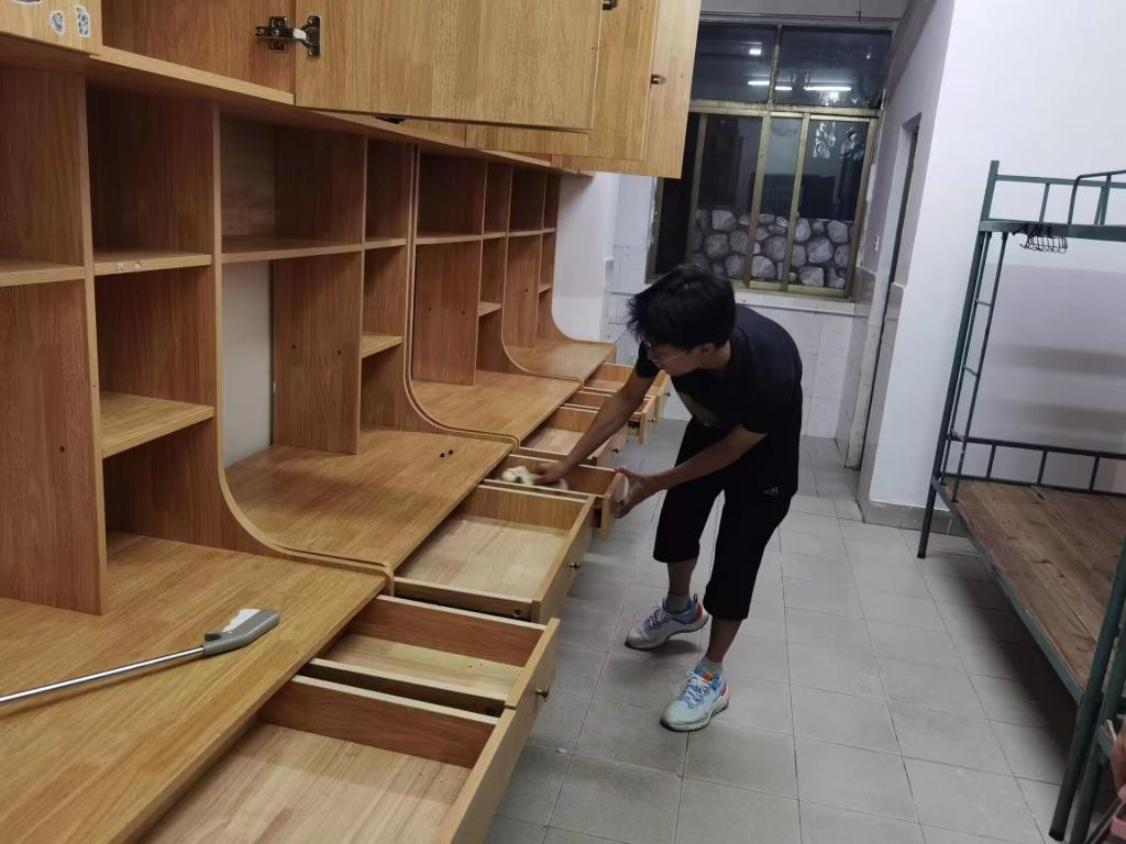 在本次活动中,我系员工志愿者积极配合班助总负责人周璇同学的组织安排,兵分五路对新生所在的宿舍进行认真细致地卫生打扫。宿舍的桌子布满灰尘,志愿者们打湿抹布细致清理;宿舍的床板脏了,志愿者们用扫帚和抹布进行轮番打扫。经过大家的相互配合与共同努力,新生所在的宿舍卫生得到了明显的改善。