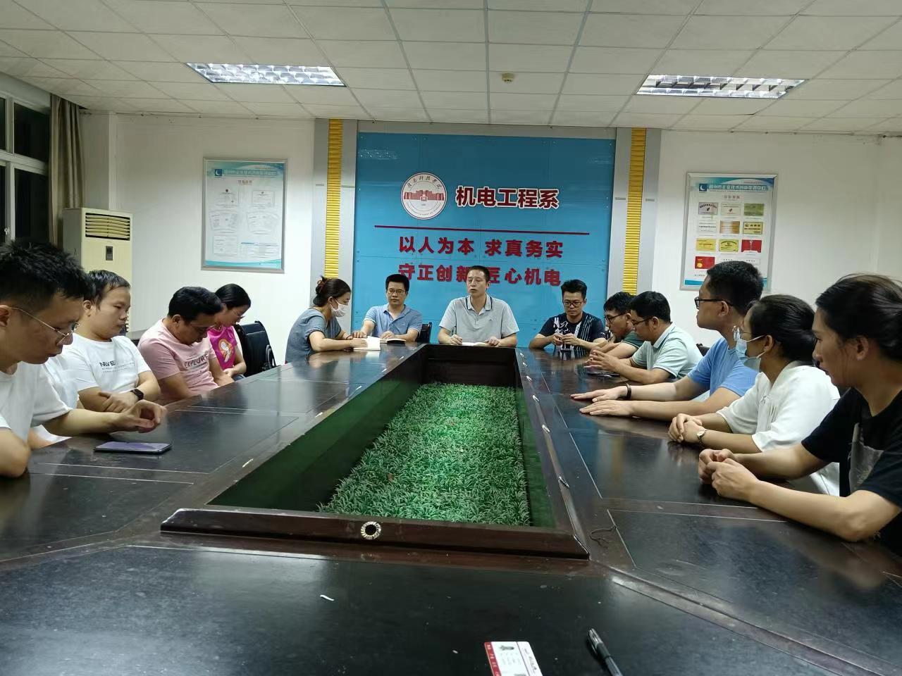 本网讯:情满中秋月,礼献教师节。9月10日晚,机电工程系在工程院S416A召开疫情防控及安全工作会议,系主任刘辉、副主任肖志华、关开荣、辅导员以及全体留校教职工参加。