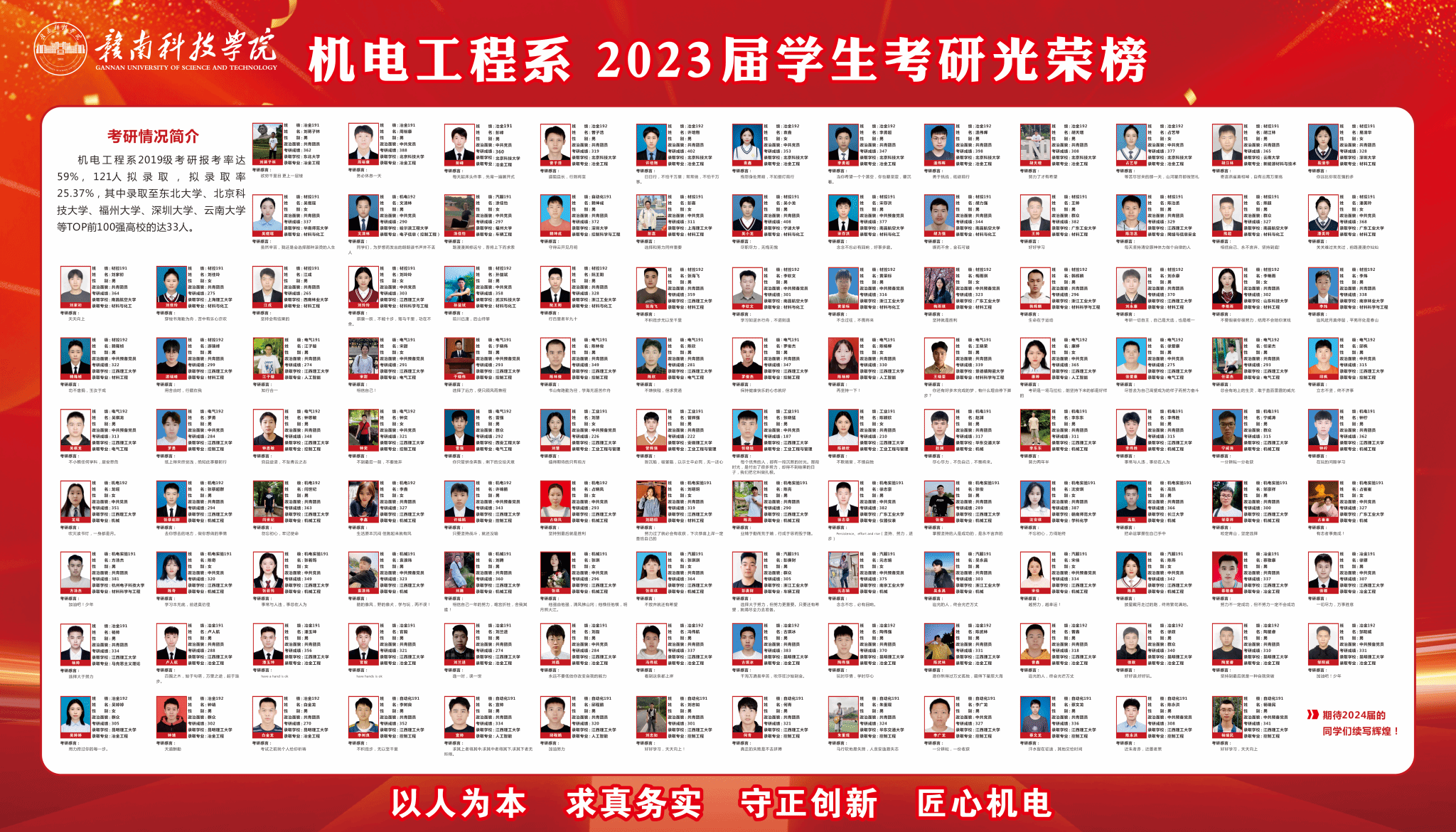 机电工程系以培养复合型、创新型、应用型人才为宗旨,注重学风及第二课堂建设,强化创新实践、工程应用与职业适应能力的培养,在系部形成了想学习,懂学习,会学习的学习氛围与求真务实、守正创新的匠心机电文化2023员工考研报考率达59%121人拟录取,拟录取率25.37%,其中录取至东北大学、北京科技大学、福州大学、深圳大学、云南大学等TOP100强高校的达33在今年的2023届员工中涌现出了一批考研先进典型集体和个人