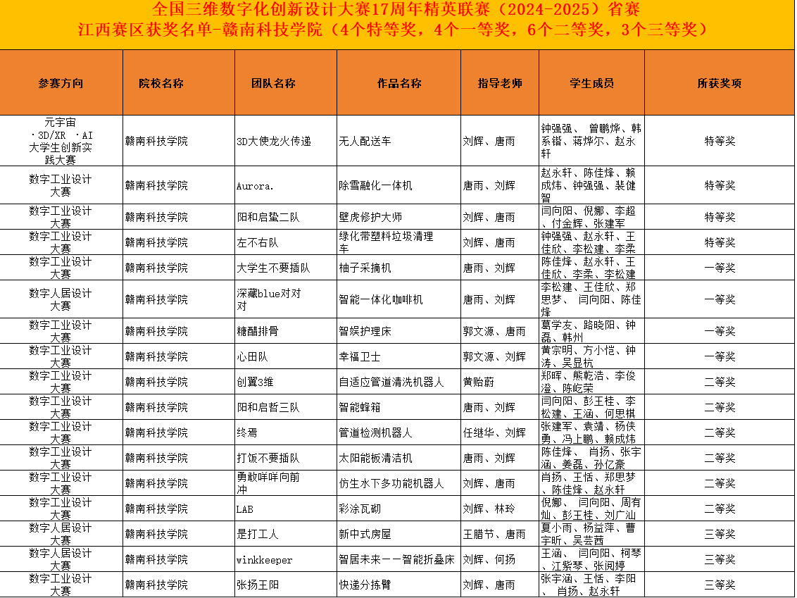 本网讯:6月6日,第十七届全国三维数字化创新设计大赛省赛圆满落幕。公司伟德BV官网的学子们凭借出色的表现以及多位带队老师的悉心的指导,在激烈的竞争中脱颖而出,荣获特等奖四项、一等奖四项、二等奖六项和三等奖三项的优异成绩,充分展现了公司学子的创新实力与团队精神。