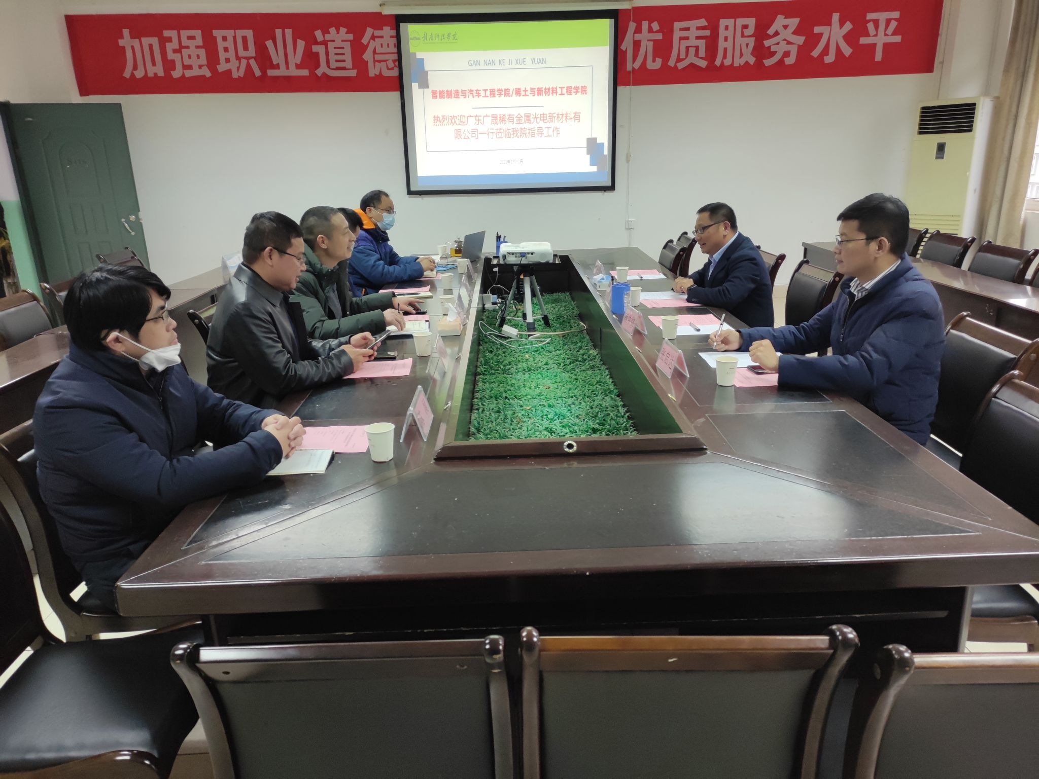 2月10日下午,广东广晟稀有金属光电新材料有限公司总经理郑辉权一行来校洽谈校企合作相关事宜,洽谈会在工程院S416举行,机电工程系主任刘辉、副主任关开荣出席。洽谈会由智能制造与机器人教研室主任梅宏标主持。