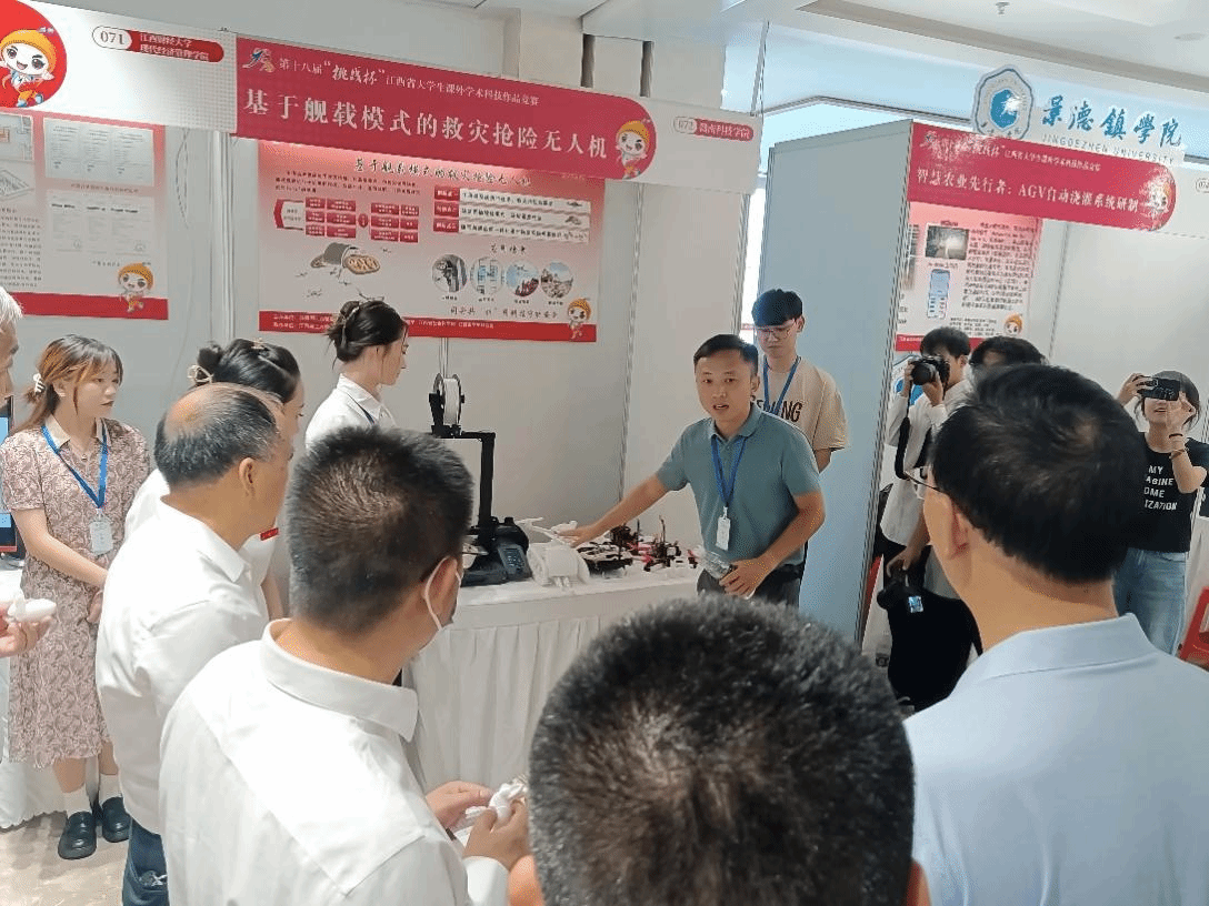 针对本次赛事,公司领导高度重视,董事长李国金亲临现场为公司校参赛选手鼓劲加油,勉励同学们认真备赛创造佳绩。同时,共青团江西省委书记邱凌同志及各位专家莅临公司作品《同舟共“机”——基于舰载模式的救灾抢险无人机》展台指导,并听取团委李敏书记及员工项目负责人的作品汇报。