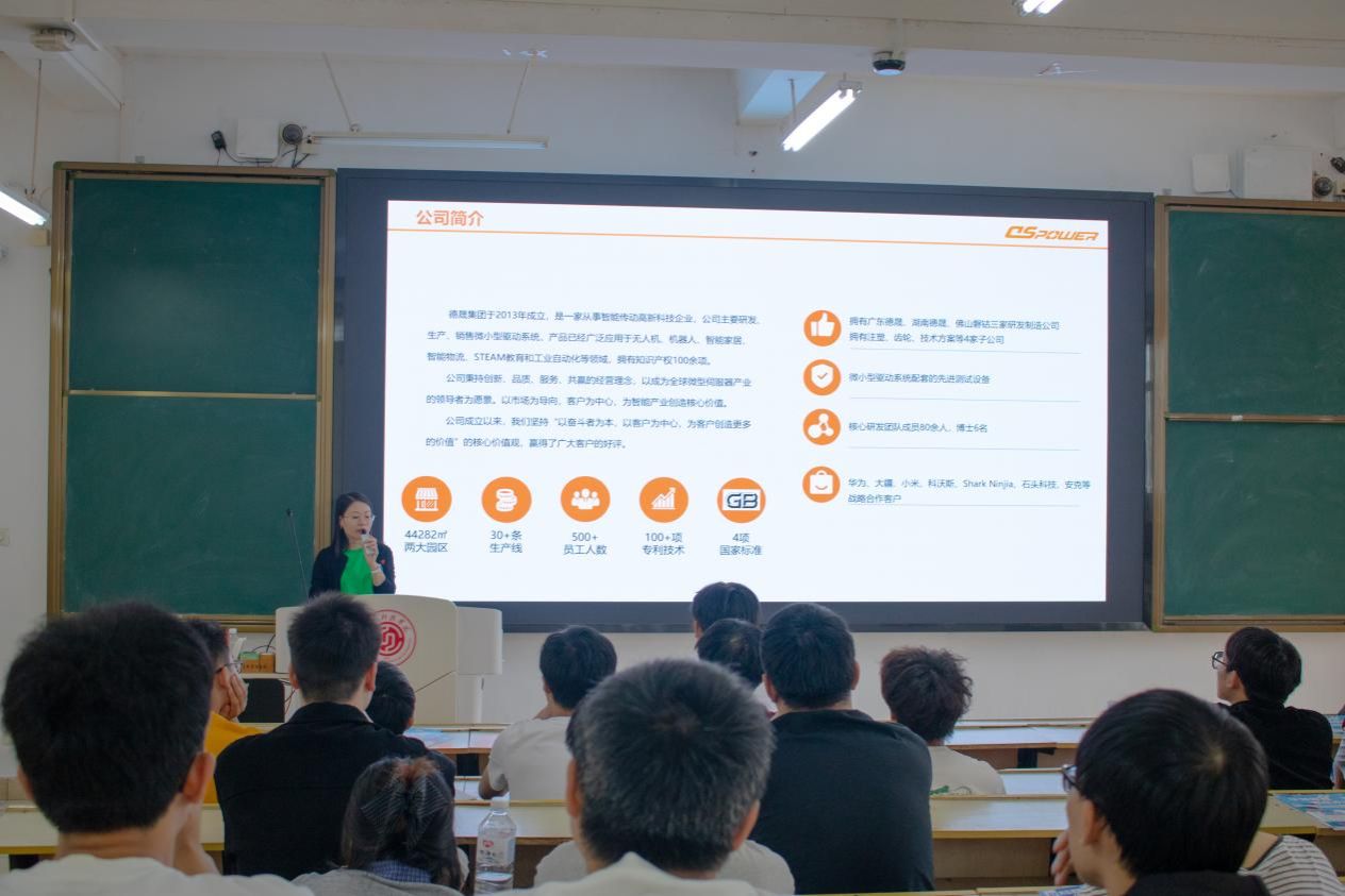 宣讲会上,来自智能制造、装备研发、新材料等领域的多家知名企业依次进行展示,向同学们介绍了企业发展状况、岗位需求、人才培养体系以及未来职业发展路径。深圳市华领智能装备有限公司、广东德晟智能科技有限公司等企业开展了现场宣讲,并与同学们进行了面对面交流,现场氛围热烈。