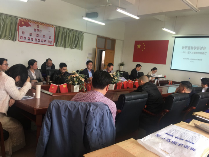 (本网讯:梁田、关开荣)为进一步做好机电工程系本科专业人才培养方案修订工作,创新人才培养模式,优化人才培养体系,提高人才培养质量,4月13日下午,我系组织全体教师开展2021版人才培养方案修订研讨会。此次研讨会按学科分机械、材料冶金、电气自动化三个专业群分组举行。公司副经理付玉华、系主任刘辉、系党总支书记朱根松、副主任关开荣和肖志华分别参加各组研讨会,三个小组分别由常军然、张聚国、李明辉三位教研室主任主持。