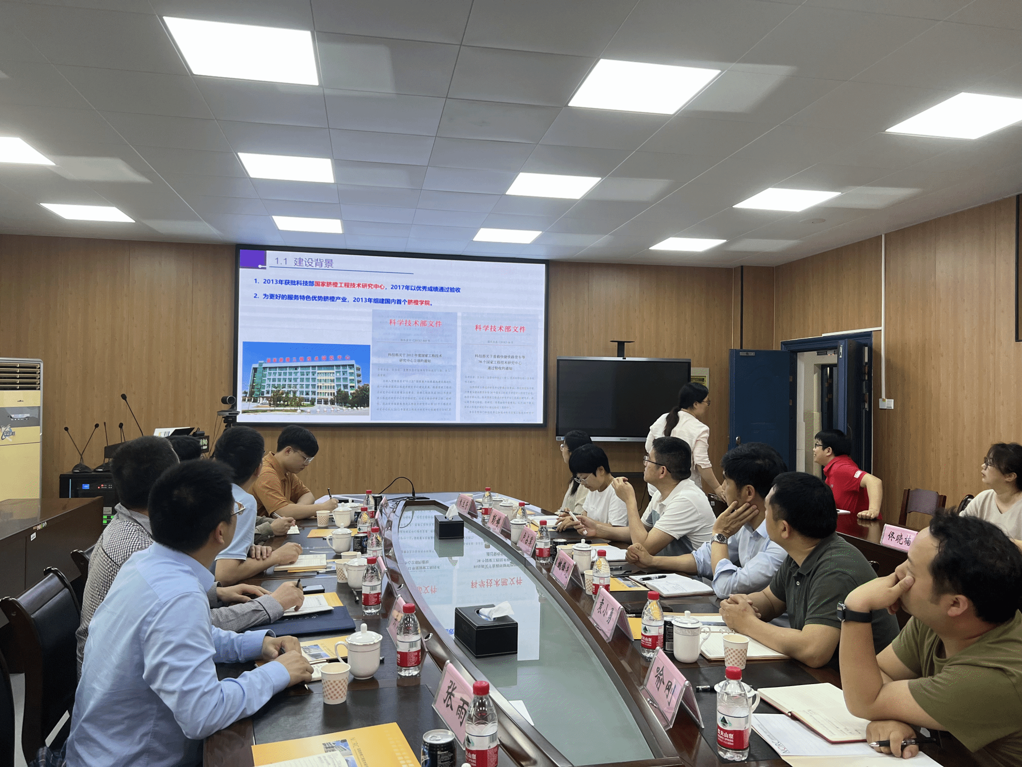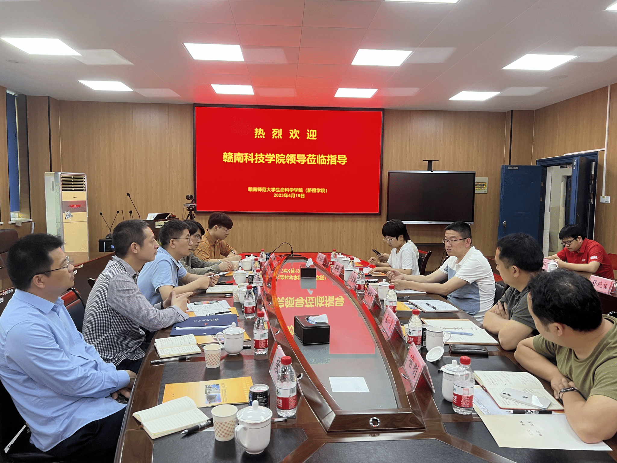 本网讯:4月19日,集团过渡期管委会委员付玉华带领下,智能制造公司刘辉等一行赴赣南师范大学调研现代产业公司建设,赣南师范老员工命科学公司(脐橙公司)经理卢占军、副经理彭婷与袁小勇,赣南师范大学国家脐橙工程技术研究中心副主任姚锋先等热情接待并举行了座谈会,赣南师范老员工命科学公司(脐橙公司)果树教研室主任米兰芳、蔬菜花卉教研室主任喻刚、果树教研室副主任王敏、教学科研办公室主任佟晓楠、教学秘书黄振陆,智能制造与汽车工程公司关开荣、陈闻、张雨、钟赫等参加座谈会。