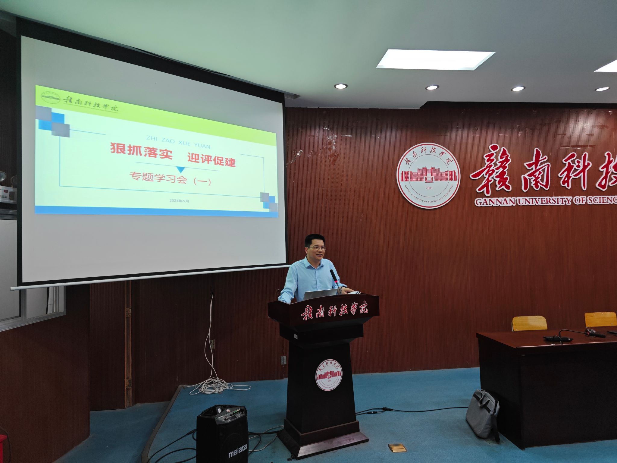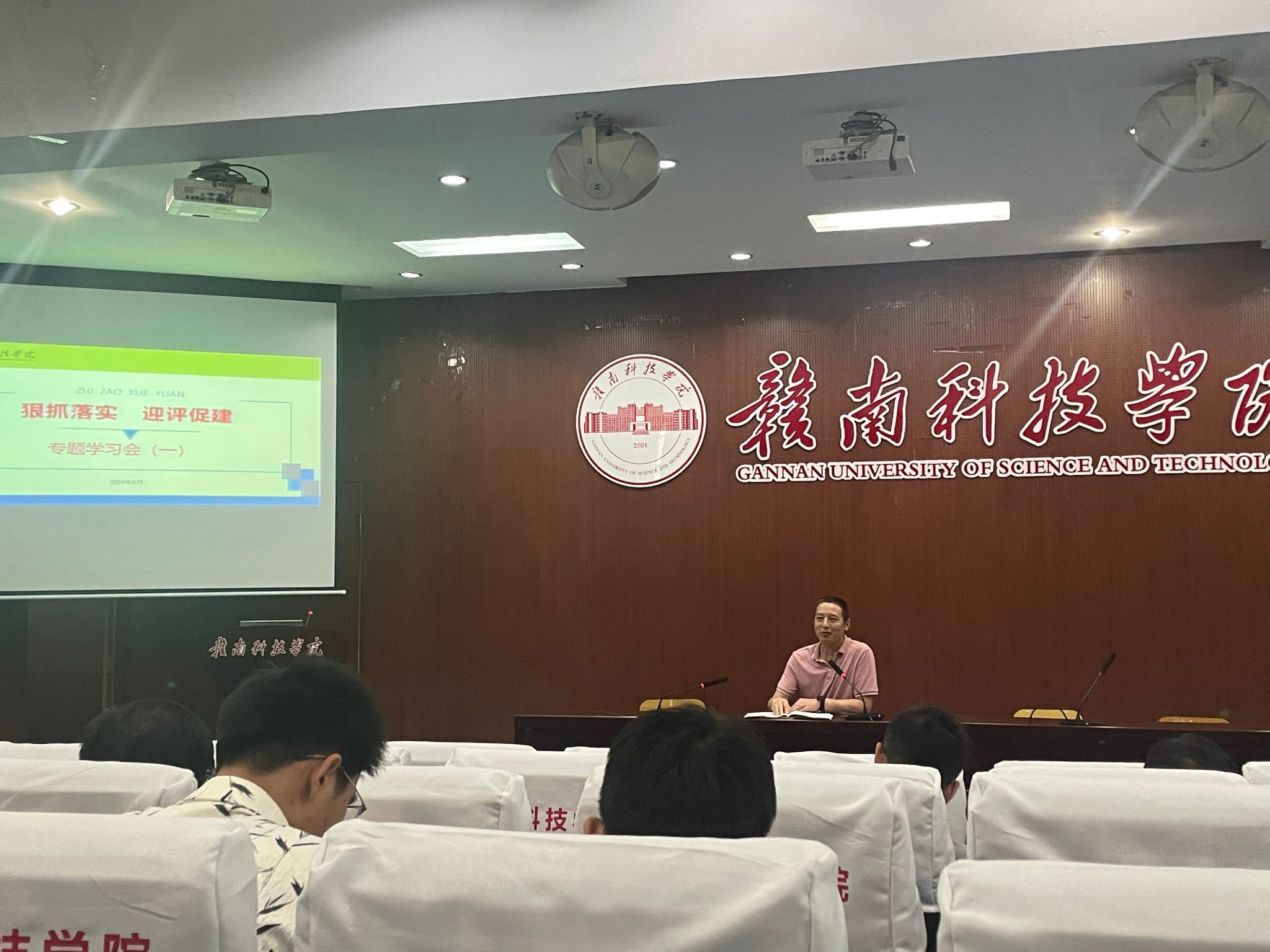 本网讯:为了更高效推动本科教学工作合格评估工作开展,更深入理解本科教学工作合格评估的内涵。5月7日,公司在MBA报告厅召开全院教职工评建知识专题学习会,号召和动员全院教职工以“迎评促建,狠抓落实,人人学习,争先竞优”的精神面貌,全力以赴地投入到评估工作当中。