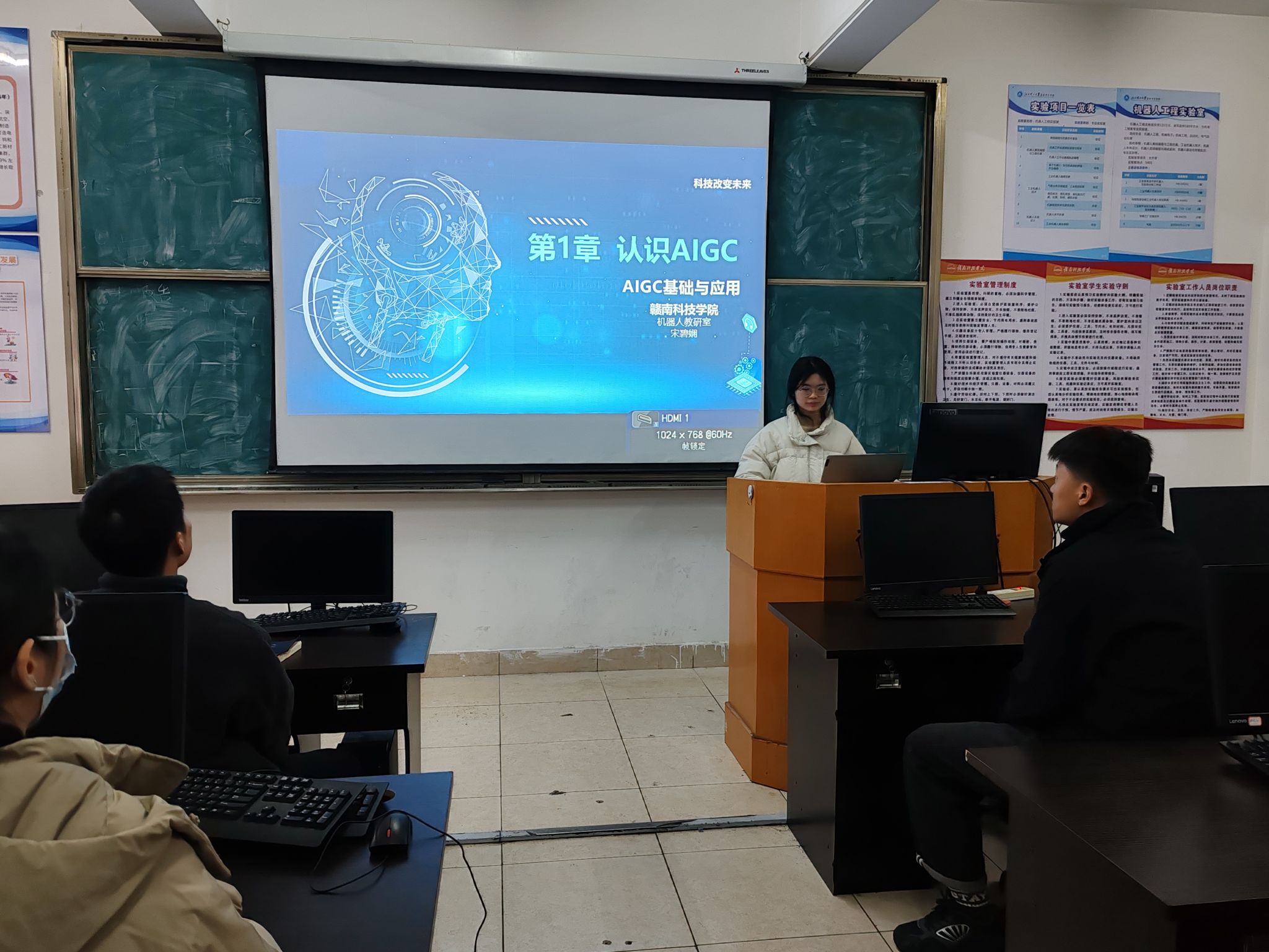 宋碧娴老师以“AIGC技术应用”课程为切入点,通过贴近实际应用的案例演示,深入浅出地阐释了“理论结合实践”的教学理念,并借助动态课件直观展示课程核心模块的逻辑脉络。