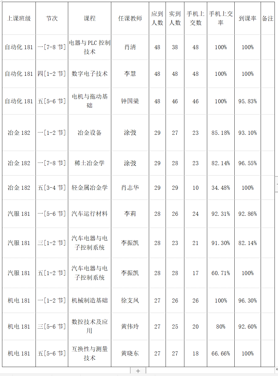 一、第十五周抽查到课率情况通报