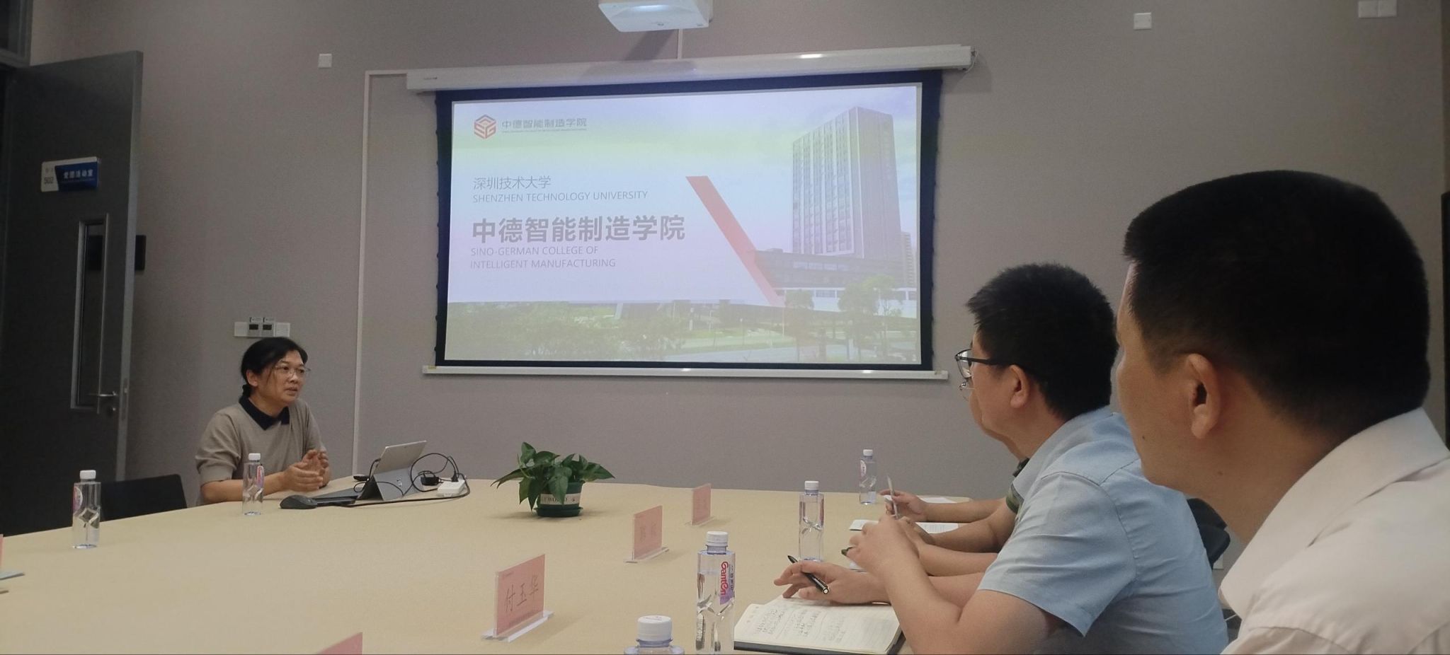 8月5日到深圳技术大学中德智能制造公司,该公司独特的办学理念和鲜明的人才培养特色,让调研成员眼前一亮。在座谈中,中德智能制造公司陈菲副经理详细介绍了公司的发展历程与人才培养定位。中德智能制造公司自成立以来,紧紧围绕国家战略需求和深圳市“20+8”产业集群,借鉴德国技术人才培养的先进经验,既强调专业理论知识的掌握和技能训练,又突出技术研发、创新及应用。公司积极探索产学研用一体化协同育人和协同科创新模式,推动“产业+学科”深度融合,开设校企合作专业与课程、共建实习实训基地、协同创新平台、特色联合实验室等。在专业设置上,紧密围绕深圳市重点发展的智能制造产业,机械设计制造及其自动化、机器人工程等专业均与当地龙头企业建立了深度合作关系,形成了“专业建在产业链上”的鲜明特色。