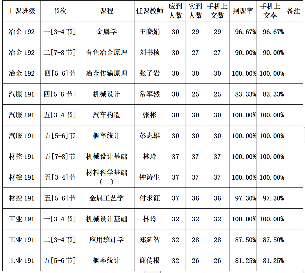 一、周抽查到课率情况通报