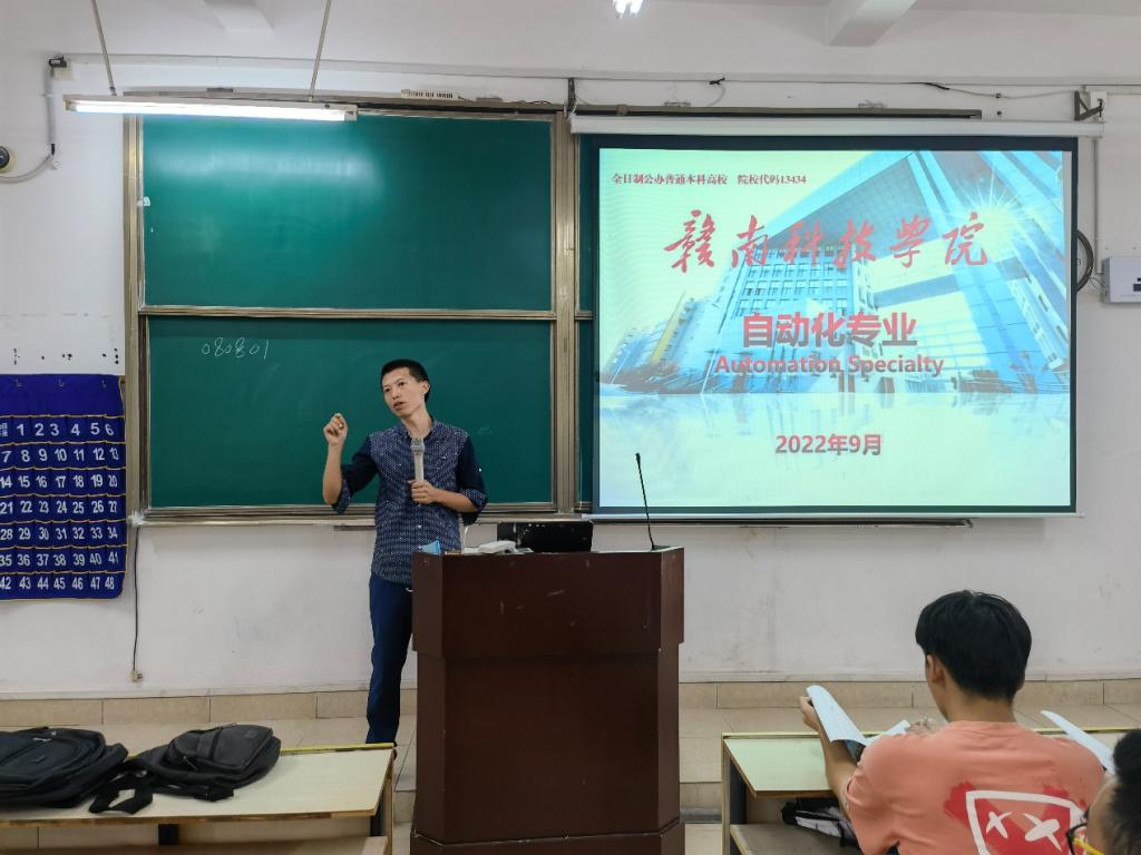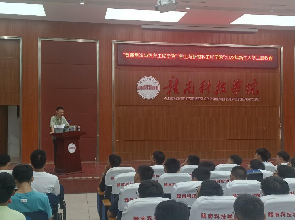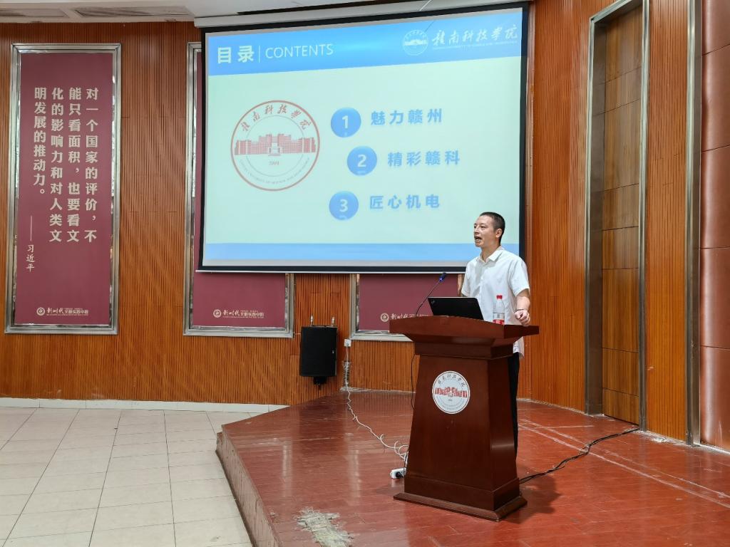刘辉主任以“魅力赣州,精彩赣科,匠心机电”对22级新生进行了宣讲他希望同学们在今后的⼤学活中严格要求自己,不断努力在⼤学中找到⾃⼰的⼈⽣价值。朱根松老师则对新生开展了党史学习教育,旨在让同学们明白生活在和平、富足的的环境中,身上也肩负着沉甸的责任。其余老师也分别从疫情防控、安全教育、专业建设、教学规划和日常管理等方面向同学们做了宣讲。