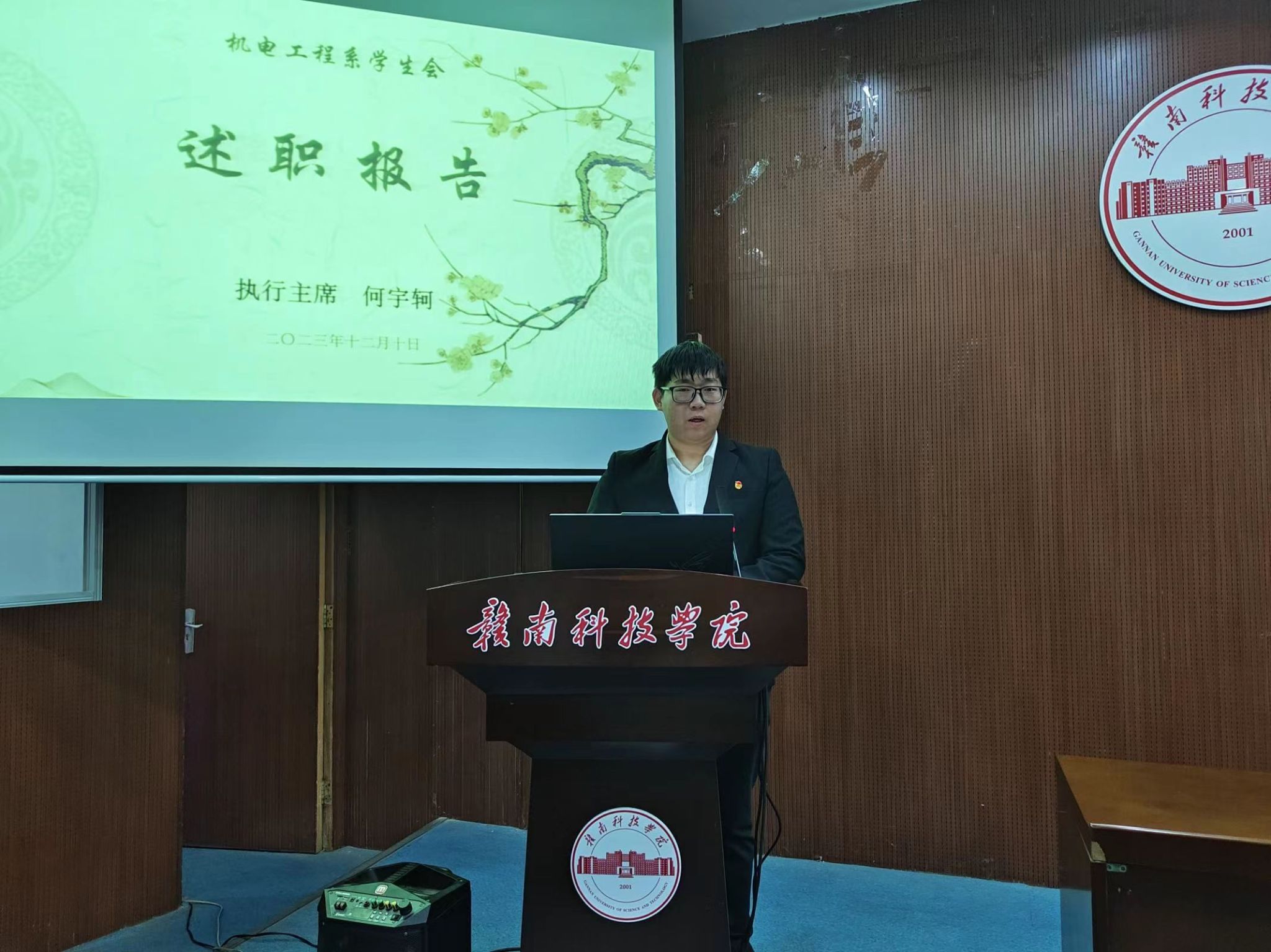会议开始,机电工程系员工会执行主席何宇轲同学、团总支第一员工副书记陈章健同学和团总支第二员工副书记饶宇鸿同学上台发言,对我系团总支、员工会本学期工作中取得的成绩、存在的不足做出详细汇报总结以及对下一年的工作做出展望。