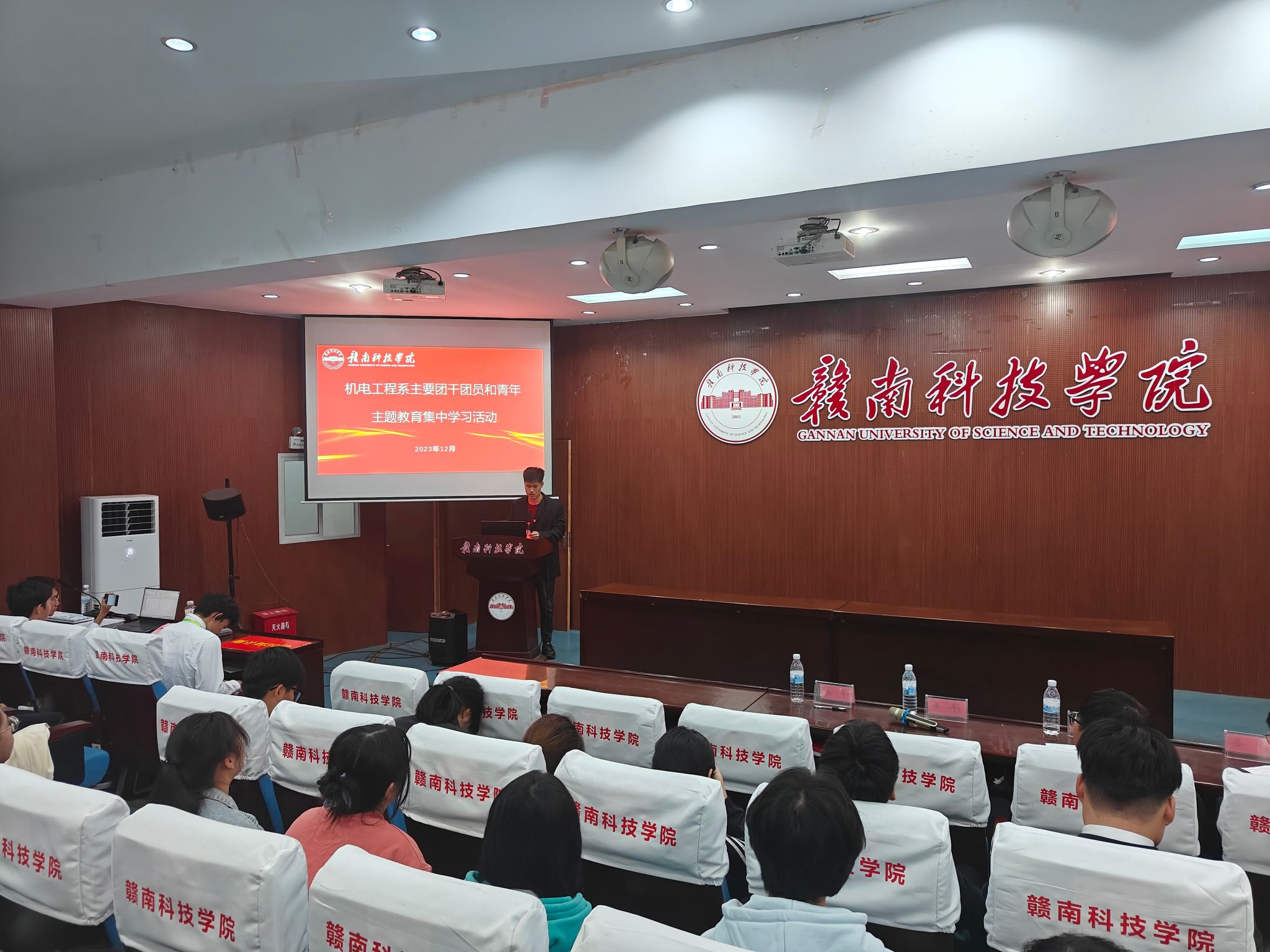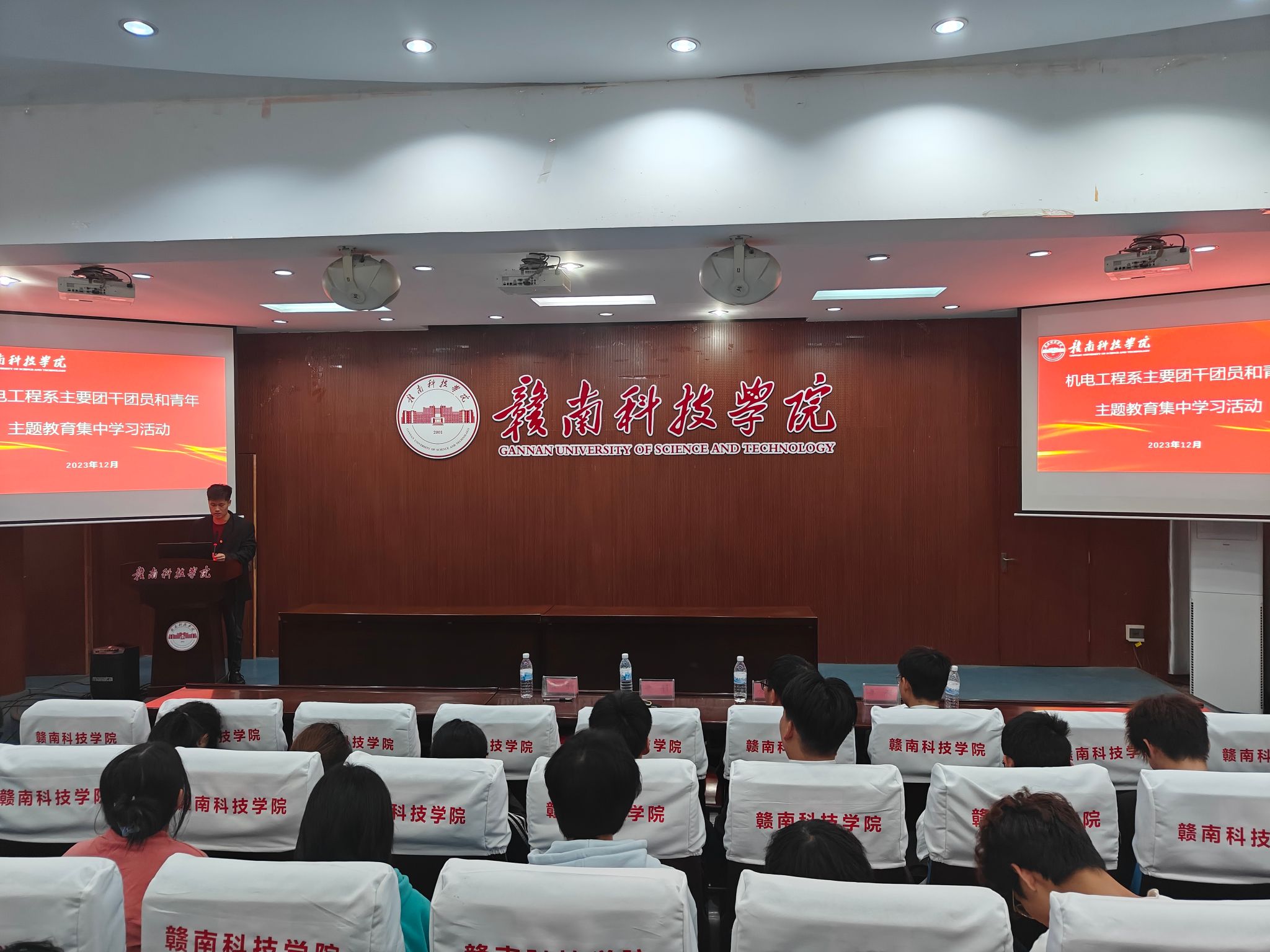 本网讯:为了加强我系学干联系,增强归属感与成就感,同时提高了学干们的工作能力、工作效率,2023年12月10日下午,机电工程系团总支、员工会在MBA报告厅组织召开了机电工程系主要团干团员和青年主题教育集中学习活动,会议由机电工程系团总支书记卢名亮老师主持,全体团总支员工会学干参与了此次培训。
