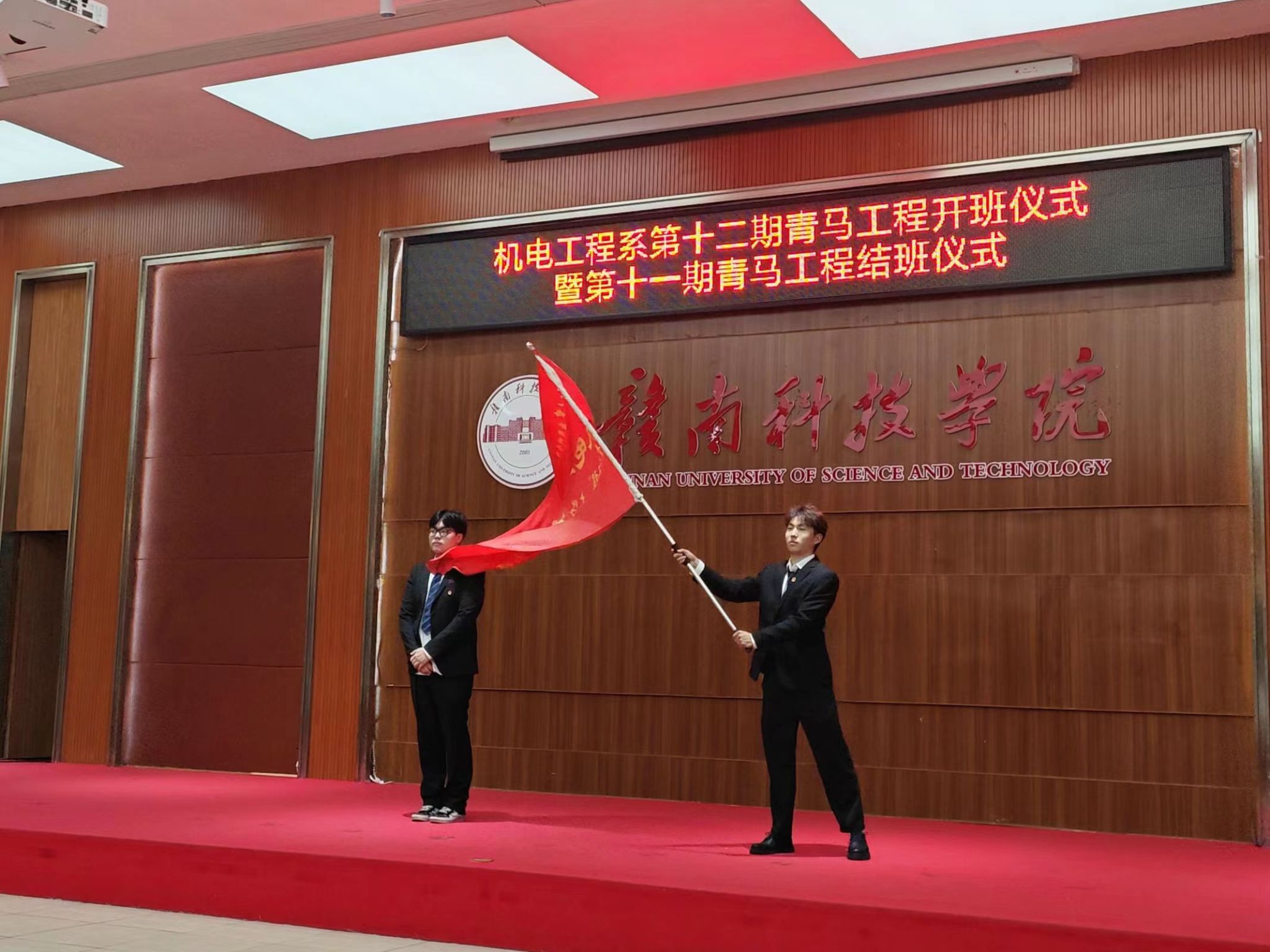 本网讯:为全面落实团省委、省学联的有关要求,深入推进“青年马克思主义者培养工程”,培养和造就一批优秀、拔尖的青年人才,机电工程系团总支、员工会举办青马培训班,同时面向全系招收学员,并于12月11日在图书馆报告厅举行十一期青马班结业典礼暨第十二期开班仪式。两期青马班全体成员参加会议,机电工程系团总支书记卢名亮和机电工程系员工会副主席蒋英明出席本次会议。