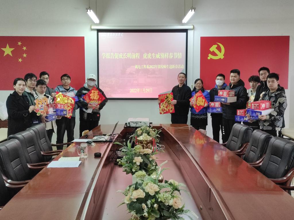 1月29日上午,机电工程系在崇善楼8楼会议室开展以”学报告促成长明前程,虎虎生威别样春节情”为主题的留校师生迎新春活动。系主任刘辉出席,班主任代表、辅导员及全体留校员工参加。活动由孔靖宇主持。