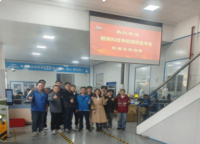 本网讯:3月31日,为深入推进产教融合,拓宽员工就业渠道,提升人才培养质量,今天下午,智能制造现代产业公司照耀齿轮班师生一行9人赴赣州刀父科技公司开展参观学习考察交流活动。此次活动旨在搭建校企深度合作桥梁,实现教育资源与产业需求的精准对接。